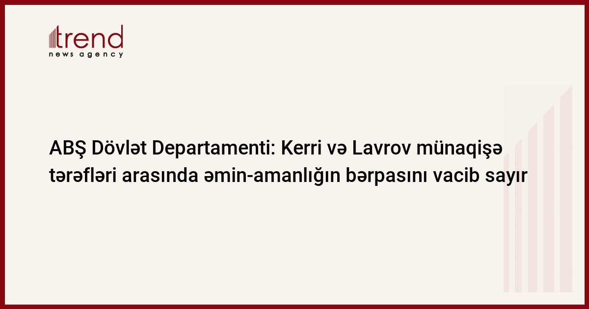 Rusiyanın xarici işlər naziri Sergey Lavrov və ABŞ dövlət katibi Con Kerri telefon danışıqları zamanı vurğulayıblar ki, Dağlıq Qarabağ münaqişəsinin tərəfləri arasında əmin-amanlığın bərpası üçün səyləri davam etdirmək lazımdır.