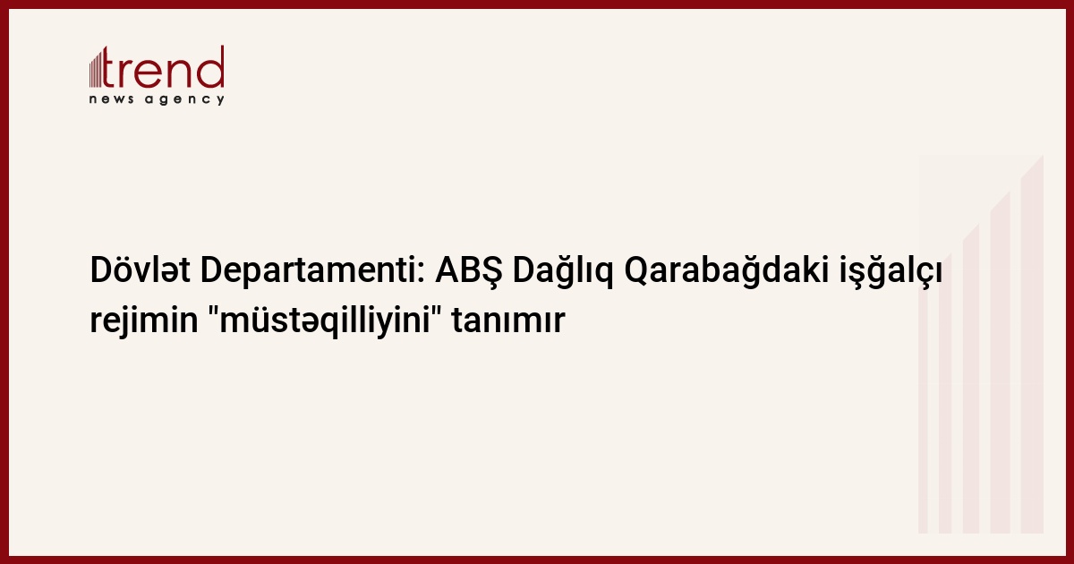 ABŞ beynəlxalq ictimaiyyətlə birlikdə Dağlıq Qarabağda yaradılmış işğalçı rejimin "müstəqilliyini" tanımır.