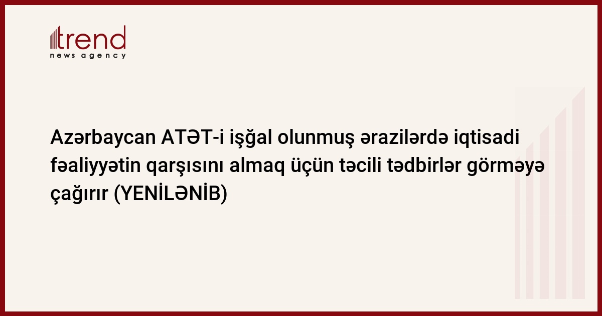 «Biz yenidən ATƏT üzvlərini Azərbaycanın işğal olumuş ərazilərində istənilən fiziki və hüquqi şəxslərin fəaliyyətinin qarşısını almaq üçün təcili və effektiv tədbirlər görməyə çağırırıq".