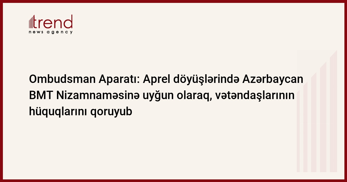 Aprel döyüşləri zamanı Azərbaycan BMT Nizamnaməsinə uyğun olaraq təcavüzə qarşı müdafiə hüququndan istifadə edərək, təcavüzkarın cavabını verib və bununla da öz vətəndaşlarının hüquq və azadlıqlarını qoruyub.