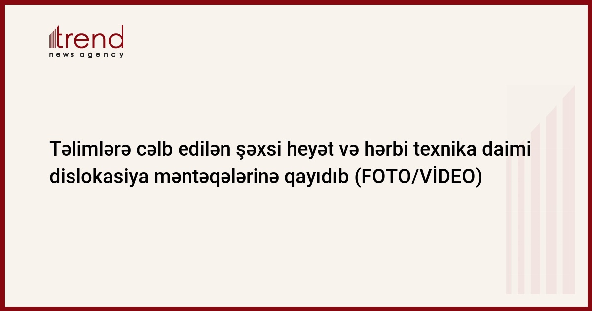 Azərbaycan Ordusunun genişmiqyaslı təlimlərinə cəlb olunan şəxsi heyəti və hərbi texnikası daimi dislokasiya məntəqələrinə qayıdıb.