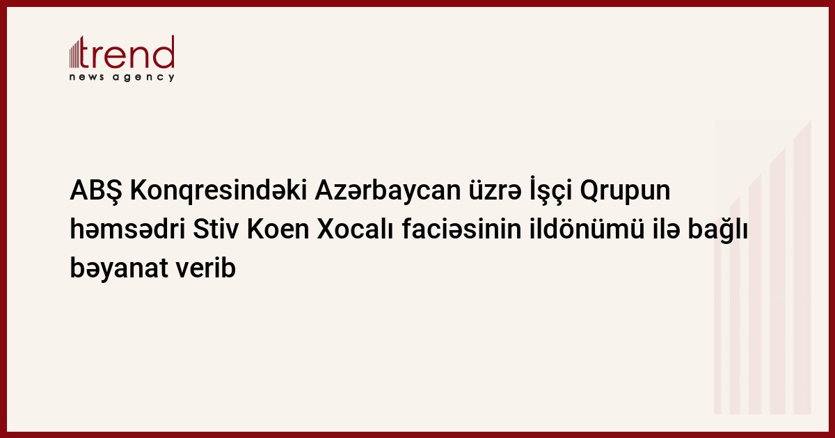 ABŞ Konqresindəki Azərbaycan üzrə İşçi Qrupun həmsədri, Nümayəndələr Palatasında Tennesi ştatını təmsil edən demokrat Stiv Koen Xocalı Faciəsinin 27-ci ildönümü ilə bağlı bəyanat verib.
