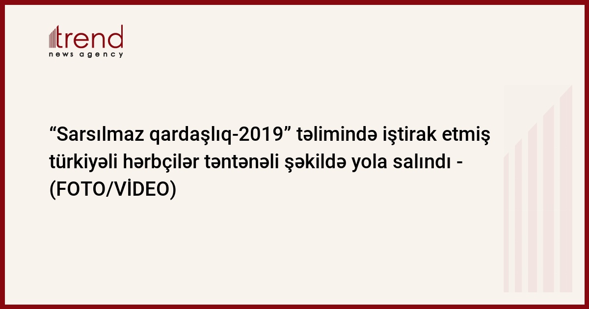 “Sarsılmaz qardaşlıq-2019” Azərbaycan-Türkiyə birgə döyüş atışlı taktiki təliminə cəlb edilmiş Türkiyə Respublikası Silahlı Qüvvələrinin şəxsi heyətinin təntənəli yola salınması mərasimi keçirilib.