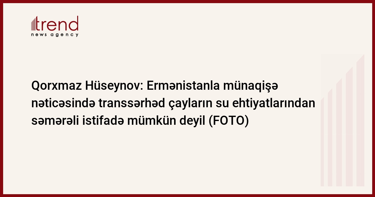 "Azərsu" ASC-nin sədri qeyd edib ki, Ermənistanla yaranmış münaqişə nəticəsində transsərhəd çayların su ehtiyatlarından səmərəli istifadə mümkün deyil. Bu münaqişə Azərbaycanı bəzi yerli su mənbələrindən məhrum edib. Buna misal olaraq su tutumu 560 milyon kubmetr olan Sərsəng su anbarını və digər su obyektlərini göstərmək olar. Nəzərə çatdırılıb ki, Azərbaycanın su infrastrukturunun yaxşılaşdırılması dövlətin sosial-iqtisadi siyasətinin prioritet istiqamətlərindən biridir. Hazırda su təhlükəsizliyinin təmin edilməsi məqsədilə yerüstü və yeraltı su ehtiyatları yenidən qiymətləndirilir, su ehtiyatlarının inteqrasiyalı idarə edilməsi və içməli su təchizatının yaxşılaşdırılması istiqamətində mühüm işlər görülür. Prezident İlham Əliyevin xüsusi tapşırığına uyğun olaraq 2013-cü ildə regionun ən müasir laboratoriyalarından biri və 2015-ci ildə ultrasüzgəc texnologiyasına əsaslanan və məhsuldarlığı sutkada 570 min kubmetr olan sutəmizləyici qurğular kompleksi istifadəyə verilib. Bununla yanaşı, ölkəmizdə sudan qənaətlə istifadə texnologiyaları sürətlə inkişaf etdirilir və qeyri-ənənəvi su mənbələrindən istifadə istiqamətində tədqiqatlar aparılır, eksperimental qurğular inşa olunur.