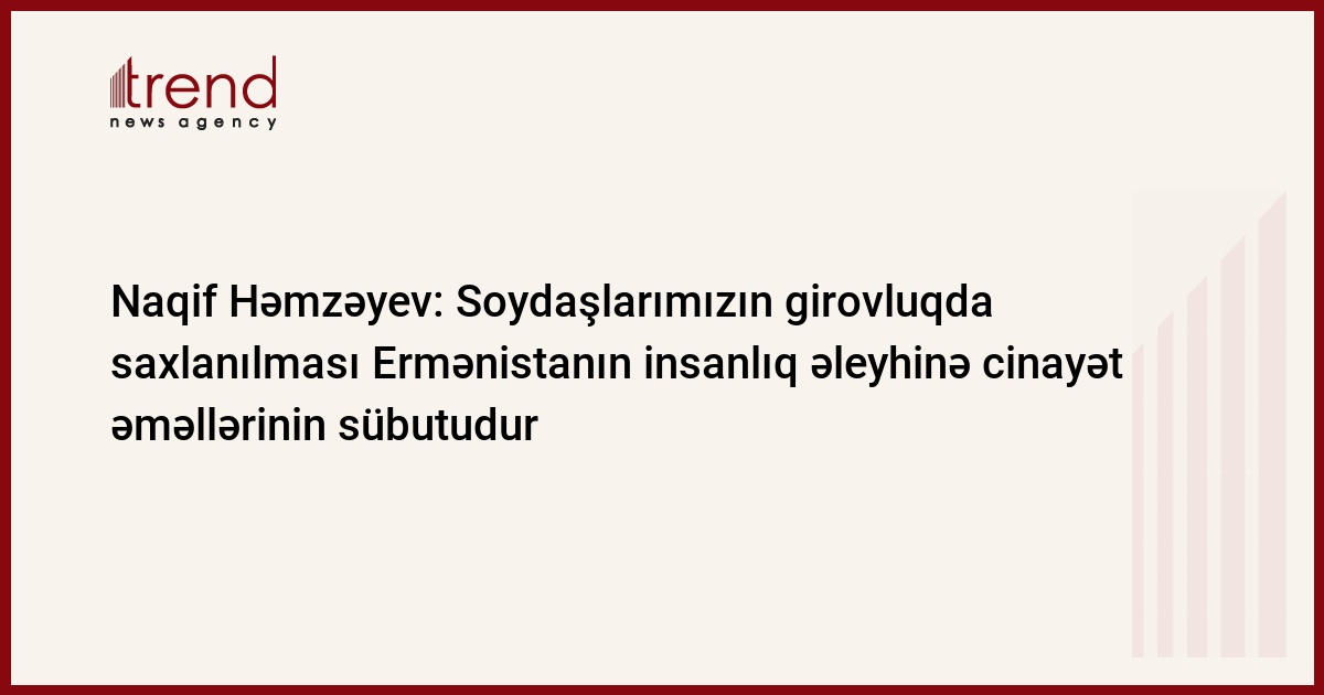 Bunu Milli Məclisin insan hüquqları komitəsinin üzvü Naqif Həmzəyev bildirib. Millət vəkili qeyd edib ki, oyuncaq separatçı rejim tərəfindən uydurma iddialar əsasında “məhkəmə”nin Dilqəm Əsgərovu “ömürlük”, Şahbaz Quliyevi isə 22 il müddətinə azadlıqdan məhrum etməsi, illərdir soydaşlarımızın işgəncələrə məruz qalması işğalçı Ermənistanın mülki şəxslərin girov götürülməsini qadağan edən və hərbi münaqişələr zamanı mülki şəxslərə münasibətdə humanist davranış tələb edən 1949-cu il Cenevrə Konvensiyaları, onların Əlavə Protokollarının müddəalarına zidd əməllərinin sübutudur.