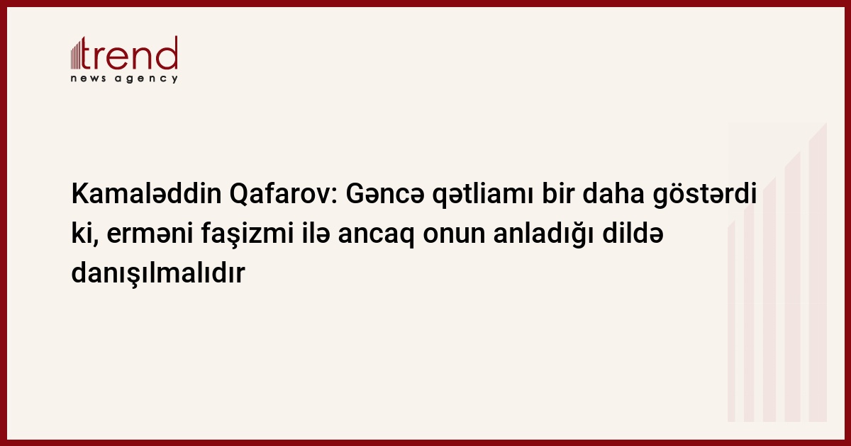 K.Qafarov bildirmişdir ki, Gəncə qətliamı bir daha göstərdi ki, erməni faşizmi ilə ancaq onun anladığı, başa düşdüyü dildə- hərb dilində danışılmalı, işğal olunmuş torpaqlarımız azad edilənə qədər onlarla məhz bu tərzdə davranılmalıdır. Məşhur bir məsəldə deyildiyi kimi: ”Külək əkən- fırtına biçər!”
