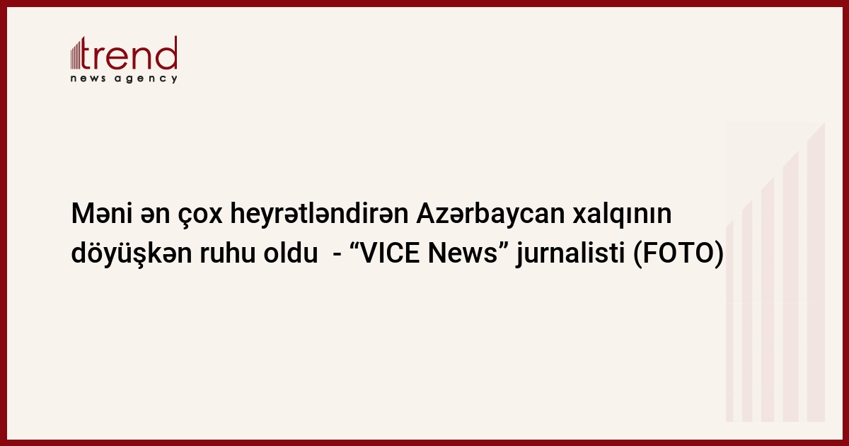 O qeyd edib ki, Dağlıq Qarabağ münaqişəsinin işıqlandırılması zamanı onu daha çox üzləşdiyi bütün əziyyətlərə baxmayaraq Azərbaycan xalqının döyüşkən ruhu heyrətləndirib: