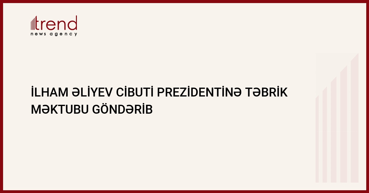 Azərbaycan prezidenti İlyam Əliyev Cibuti prezidenti İsmail Ömər Qullehə təbrik teleqramı göndərib. Trend agentliyinin məlumatına görə, dövlət başçısı öz həmkarını və Cibuti xalqını milli bayram - Cibuti Respublikasının Müstəqillik günü münasibətilə təbrik edib.