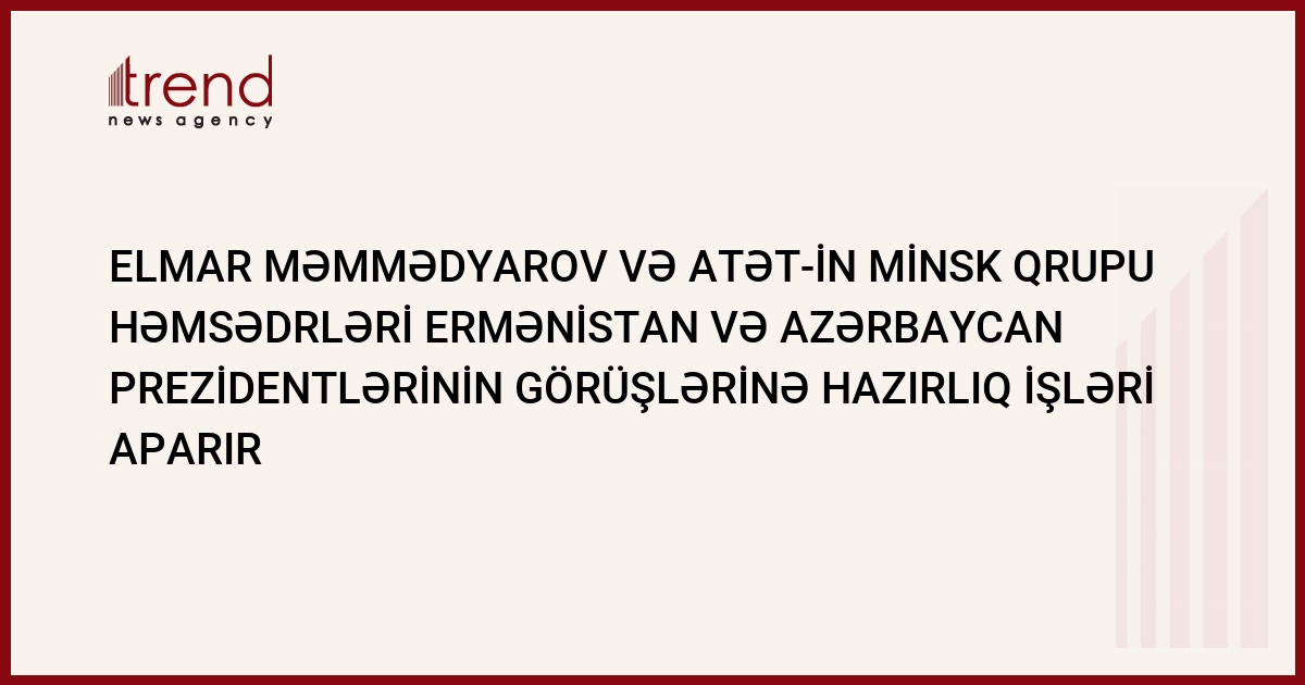 Rusiya XİN-in Dağlıq Qarabağ üzrə işçi qrupunun ofisində Trend ə bildirilib ki, ATƏT-in Minsk qrupu həmsədrləri də Azərbaycan və Ermənistan prezidentləri arasında danışıqların növbəti raunduna hazırlıq məqsədilə Kazandadırlar.