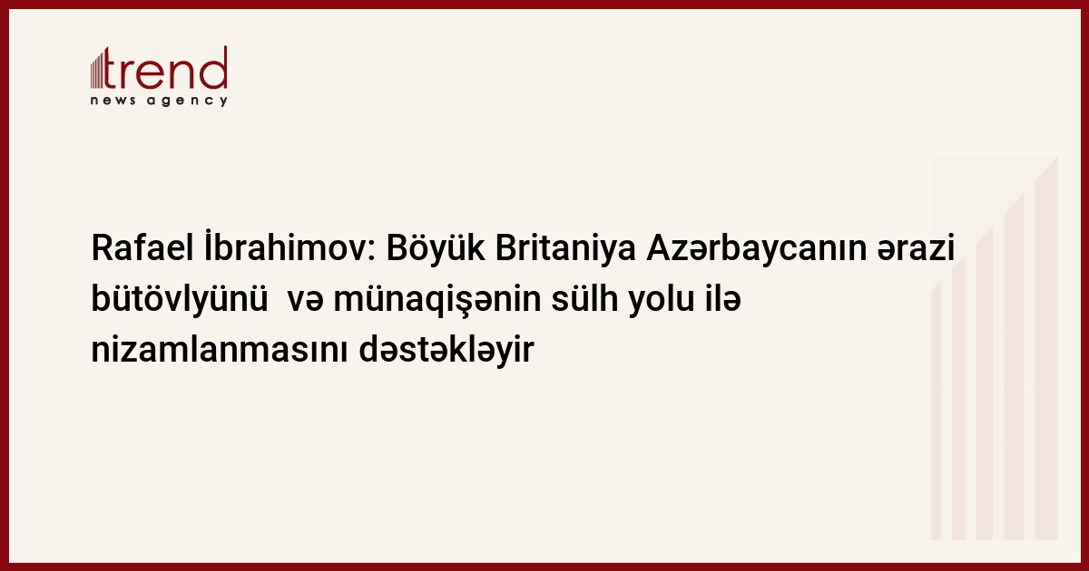 Böyük Britanyia ATƏT-in Minsk Qrupu kontekstində danışıqlar prosesini dəstəkləyir və Azərbaycan Respublikasının ərazi bütövlüyünü və suverenliyini tanıyır. Bu barədə Azərbaycanın Böyük Britaniyadakı fövqəladə və səlahiyyətli səfiri Rafael İbrahimov BBSRusiian xidmətinə müsahibəsi zamanı Trend in müxbirinin sualını cavablandırarkən bəyan edib.