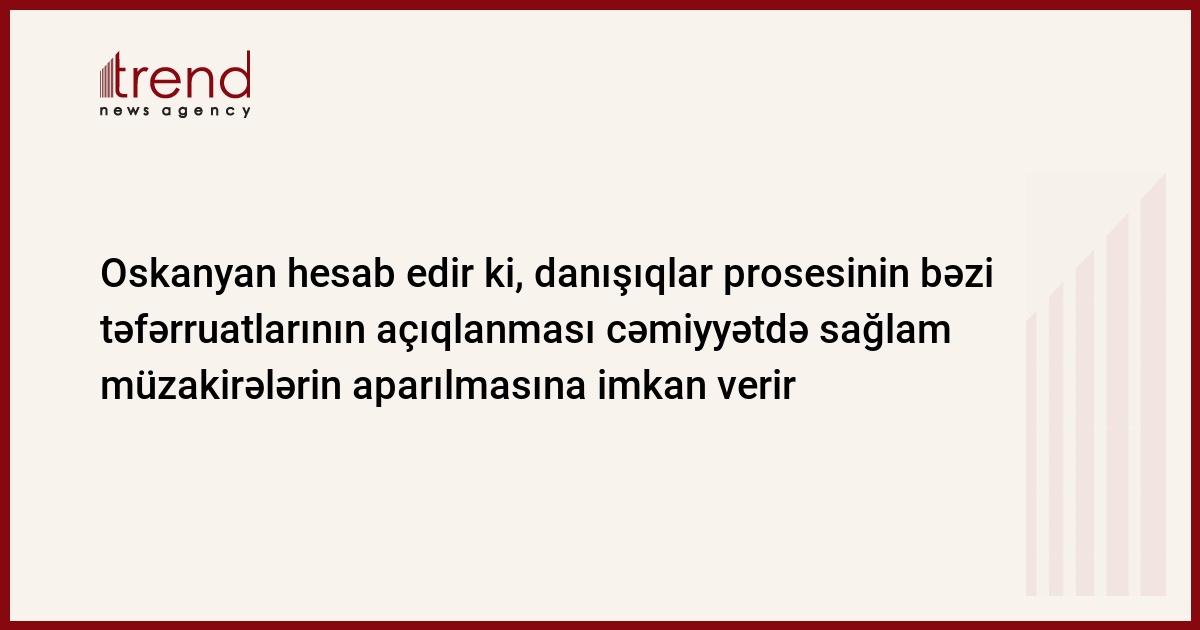 "Mediamaks" agentliyinin məlumatına əsasən, V.Oskanyan jurnalistlərə deyib ki, bəzi təfərruatların açıqlanması cəmiyyətlə sağlam müzakirələrin aparılmasına imkan verir. Bununla yanaşı, Ermənistan xarici işlər naziri vurğulayıb ki, danışıqlar prosesinin tam nəşri bu və ya digər münaqişə tərəfinin öz prinsiplərindən imtina etməsi üçün təhlükə yaradır.