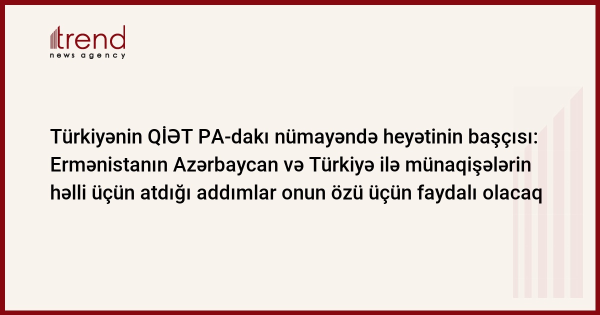 "Türkiyə artıq bu məsələ üzrə həm Azərbaycan, həm də Avropa Birliyinə dair öz mövqeyini bildirib. Avropa Birliyi Ermənistanla münasibətlərin bərpa olunmasını Türkiyənin qabağına bir şərt kimi qoyub. Lakin biz hesab edirik ki, bütün ölkələrin ərazi bütövlüyü təmin olunmalı, digər xarici dövlətlərin əraziləri işğal olunmamalıdır", - deyə Türkiyə nümayəndəsi bəyan edib.