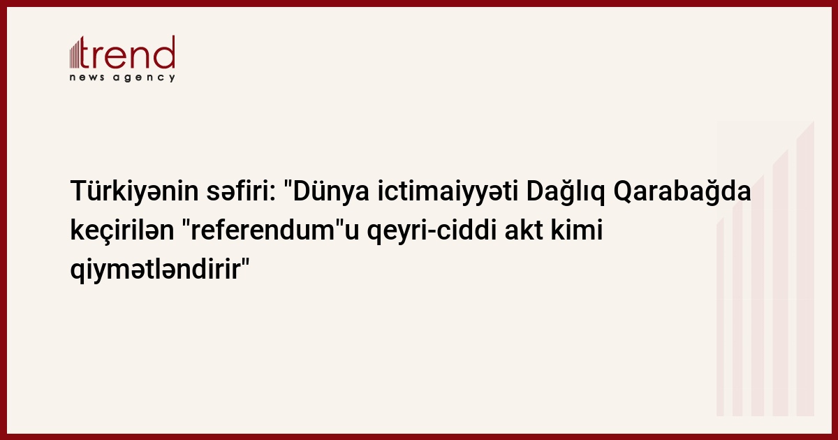 Dünya ictimaiyyəti Dağlıq Qarabağda keçirilən "referendum"u qeyri-ciddi akt kimi qiymətləndirir. Trend xəbər verir ki, bu barədə bu gün Türkiyənin Azərbaycandakı səfiri Turan Moralı bildirib.