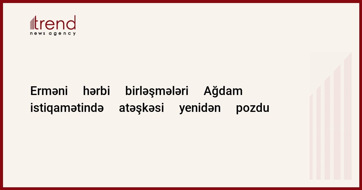Azərbaycan, Bərdə / Trend müxbir Ş.Cəliloğlu/ Son günlər qoşunların təmas xəttində atəşkəsi pozmaqda fəallığını artıran Ermənistan Silahlı Qüvvəlləri atəşkəs rejimini yenidən pozub. Erməni hərbi birləşmələri Ağdam rayonunun işğal altında olan Baş Qərvənd kəndindən axşam saat 19:10 radələrindən başlayaraq 20 dəqiqə ərzində və 23:00 radələrindən bir saat ərzində qısa fasilələrlə Azərbaycan Silahlı Qüvvə lərinin üzbəüz mövqelərini və Çıraqlı kəndini atəşə tutub. Ölən və yaralanan yoxdur.