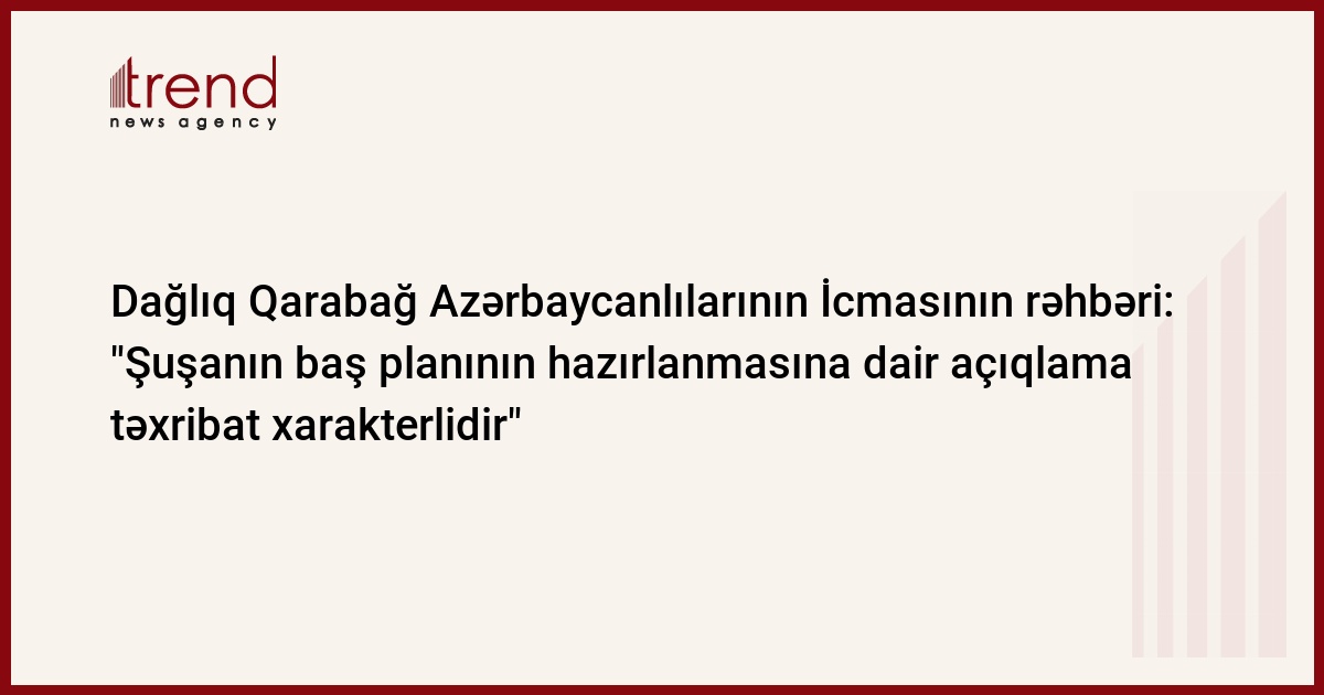 Dağlıq Qarabağ Azərbaycanlılarının İcmasının rəhbəri bildirib ki, ermənilər Şuşanın onlara məxsus olduğunu göstərməyə əsas tapmır.