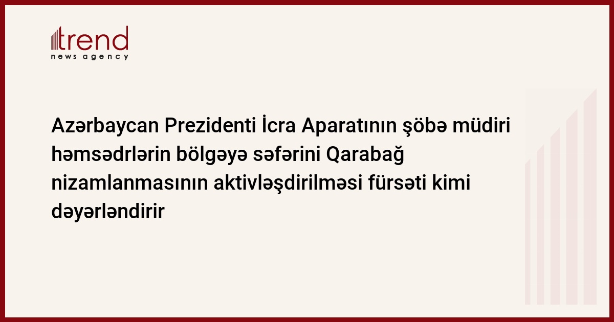 Azərbaycan, Bakı /müx. Trend C.Ağayeva/ Azərbaycan ATƏT-in Minsk qrupu həmsədrlərinin bölgəyə səfərini Qarabağ nizamlanmasının aktivləşdirilməsinin növbəti fürsəti kimi dəyərləndirir. Bu sözləri çərşənbə günü Bakıda Azərbaycan Prezidenti İcra Aparatının xarici əlaqələr şöbəsinin müdiri Novruz Məmmədov deyib.