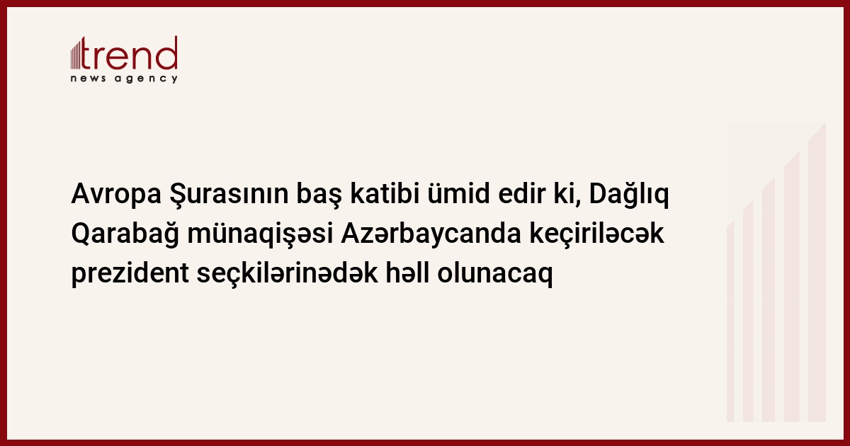 Fransa, Strasburq /müx. Trend A.İsmayılova/ Avropa Şurasının baş katibi Terri Devis Strasburqda bəyan edib ki, Dağlıq Qarabağ münaqişəsinin Azərbaycanda 2008-ci ildə keçiriləcək prezident seçkilərinədək həll ediləcəyinə ümid edir.