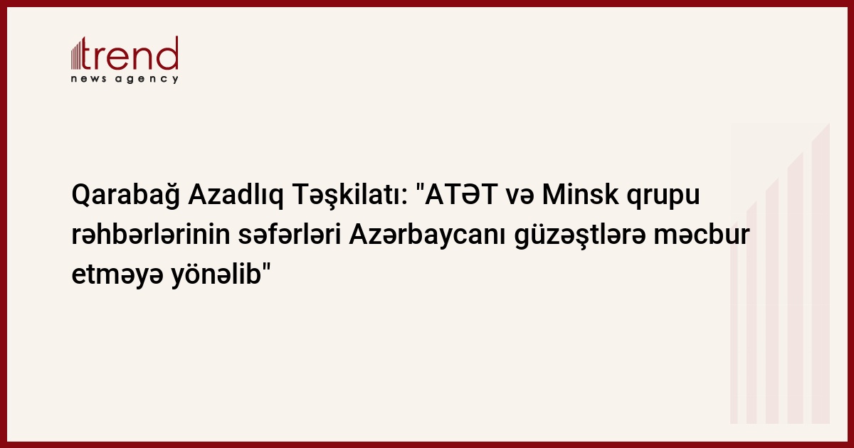 Azərbaycan, Bakı / Trend müxbir S.İlhamqızı/ ATƏT-in fəaliyyətdə olan sədrinin və Minsk qrupu həmsədrlərinin bu günlərdə Cənubi Qafqaz regionuna səfərləri Azərbaycanın güzəştlərə məcbur edilməsinə yönəlib. Bu fikirlər Qarabağ Azadlıq Təşkilatının (QAT) çərşənbə axşamı yaydığı bəyanatında bildirilir.