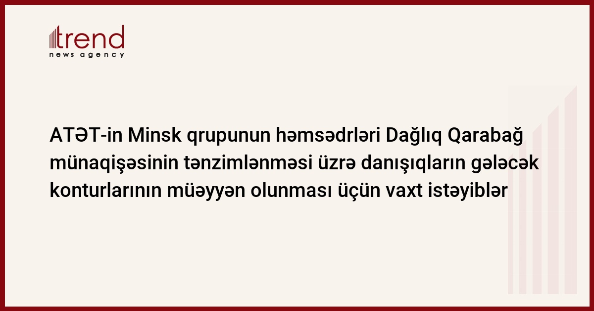 Azərbaycan, Bakı/ Trend müxbir A.İsmayılova/ ATƏT-in Minsk qrupunun həmsədrləri Dağlıq Qarabağ münaqişəsinin tənzimlənməsi üzrə danışıqların gələcək konturlarının müəyyən olunması üçün vaxt istəyiblər. Bunu bazar ertəsi Bakıda Azərbaycanın xarici işlər naziri Elmar Məmmədyarov bəyan edib
