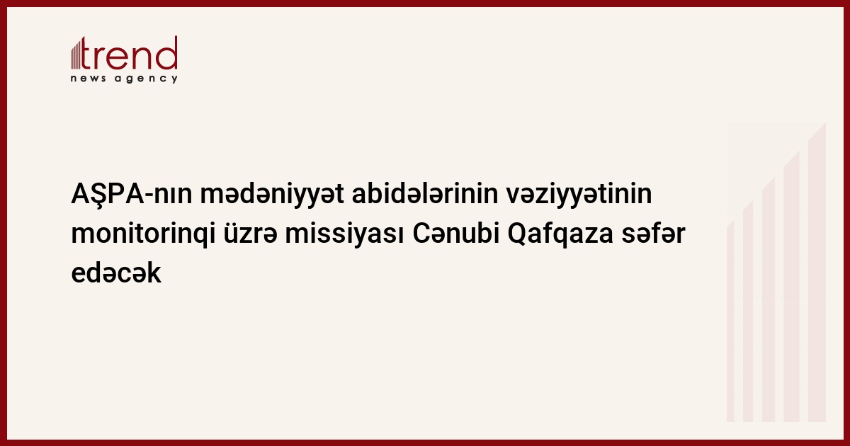 Azərbaycan, Bakı / Trend , müxbir S.Ağayeva/ AŞPA-nın Cənubi Qafqazdakı mədəniyyət abidələrinin vəziyyətinin monitorinqi üzrə missiyası britaniyalı parlamentari Edvard Oxara başda olmaqla avqustun sonunda regiona səfər edəcək.