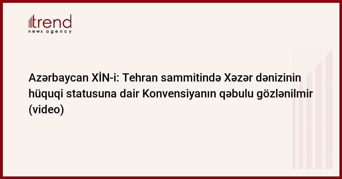 Azərbaycan, Bakı / Trend , müxbir K.Ramazanova/ Tehran sammitində Xəzər dənizinin hüquqi statusuna dair Konvensiyanın qəbulu gözlənilmir. Bu barədə çərşənbə axşamı Azərbaycan XİN-nin mətbuat katibi Xəzər İbrahim məlumat verib.
