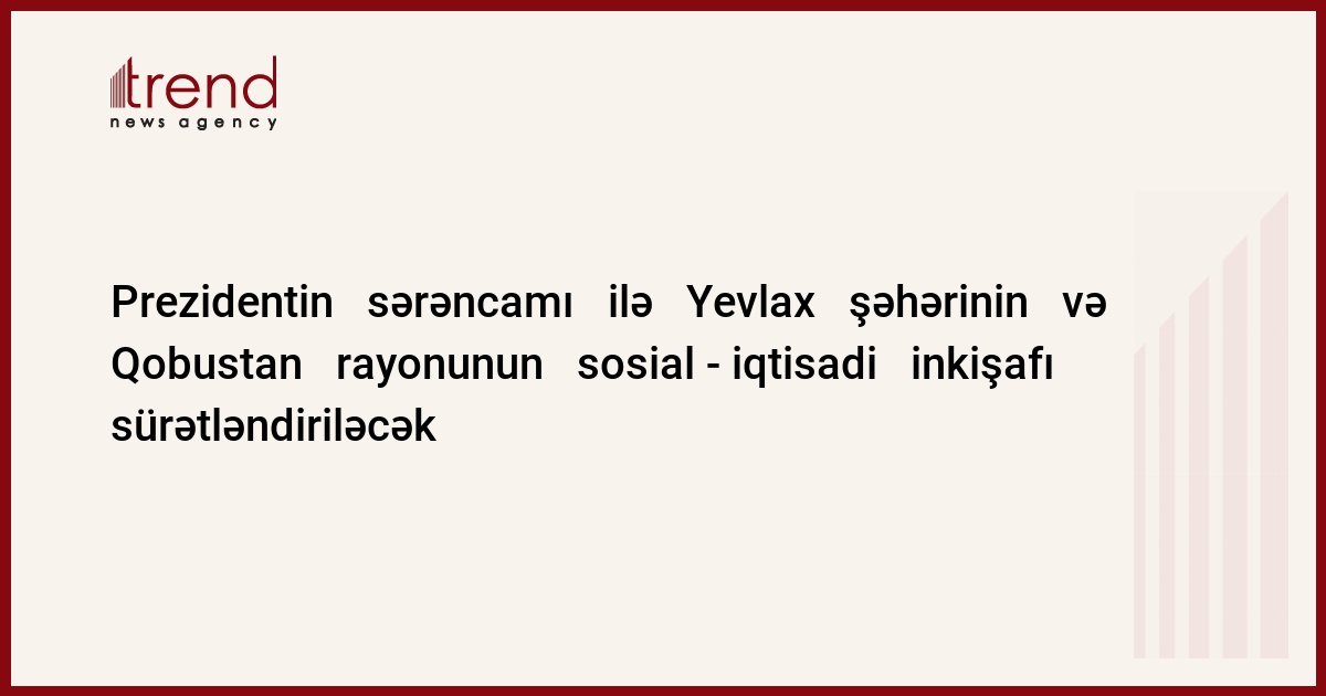 Cümə axşamı imzalanan sərəncam Yevlax şəhə rinin və Qobustan rayonunun sosial-iqtisadi inki ş af ı istiqamətində g ö r ü lən tədbirlərin həyata keçirilməsi, o c ü mlədən abadl ı q-quruculuq i ş lərinin s ü rətləndirilməsi məqsədi daşıyır .