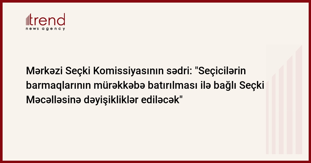 Azərbaycan, Lənkəran / Trend , müxbir P.Əliyeva/ Azərbaycanda keçirilən seçkilərdə seçicilərin barmaqlarının mürəkkəbə batırılması ilə bağlı Seçki Məcəlləsinə dəyişikliklər ediləcək, çərşənbə axşamı Lənkəranda səfərdə olan Mərkəzi Seçki Komissiyasının sədri Məzahir Pənahov jurnalistlərə bildirib. Onun sözlərinə görə, Avropa Şurası Venesiya Komissiyası ilə müzakirələr başa çatdıqdan sonra Seçki Məcəlləsinə əlavə və dəyişikliklər ediləcək.