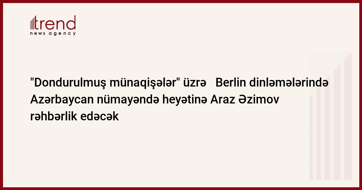 Fransa, Strasburq/ Trend müxbir A.Məhərrəmli/ Noyabrın 5-6-da Dağlıq Qarabağ, Abxaziya, Cənubi Osetiya və Dnestryanı ərazilərdə "dondurlmuş münaqişələr" üzrə Berlin dinləmələrində rəsmi Bakını xarici işlər nazirinin müavini Araz Əzimov təmsil edəcək. Bu barədə Avropa Şurası Parlament Assambleyasının (AŞ PA) yaydığı məlumatda göstərilib.