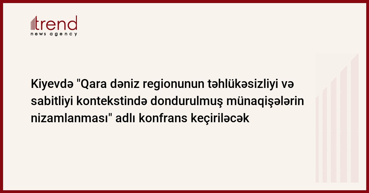 Ukrayna, Kiyev / Trend müxbir Z.Novosvitski/ Noyabrın 14-15-də Kiyevdə "Qara dəniz regionunun təhlükəsizliyi və sabitliyi kontekstində dondurulmuş münaqişələrin nizamlanması" adlı konfrans keçiriləcək. Bu barədə Ukraynanın Xarici İşlər Nazirliyindən verilən məlumatda bildirilir. Verilən məlumata əsasən, konfrans iştirakçılarının xarici işlər nazirləri və xarici işlər nazirlərinin müavinləri səviyyəsində təmsil olunacağı planlaşdırılır.