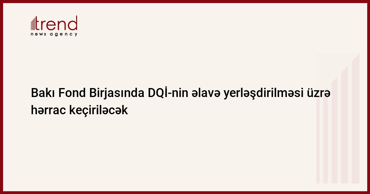 Azərbaycan, Bakı / Trend / Bu gün saat 11:00-dan 12:30-dək, BFB-də qeydiyyat №-si 10300917S olan Dövlət Qısamüddətli İstiqrazların (DQİ) əlavə yerləşdirilməsi üzrə hərrac keçiriləcək.