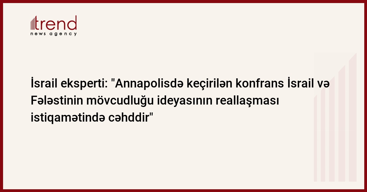 "Mümkündür ki, tərəflər Annapolisdə keçiriləcək konfransa iki dövlətin tarixində baş verən tarixi an kimi yanaşdıqları təqdirdə, konfrans Yaxın Şərq üçün ümid verə bilər" - deyə İsrail eksperti hesab edir.