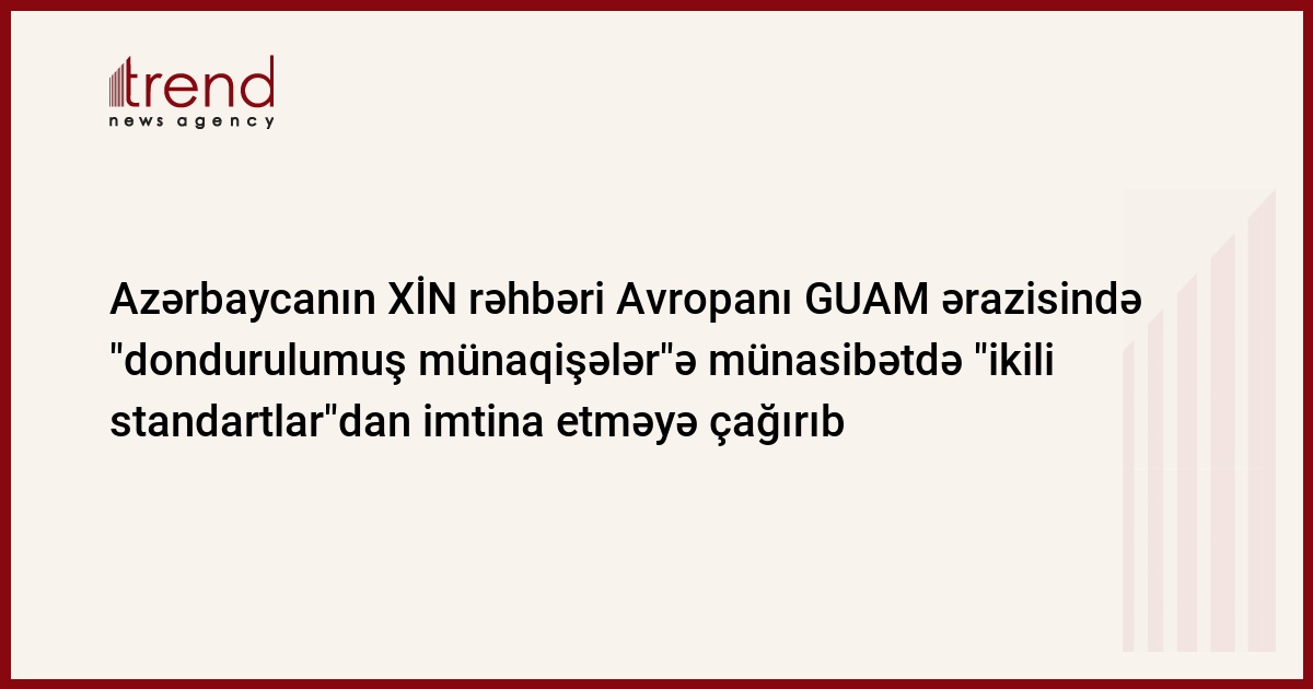 Latviya, Riqa / Trend , xüsusi müxbir N. Kuznetsova/ Azərbaycanın XİN rəhbəri Elmar Məmmədyarov Avropanı GUAM ərazisində "dondurulumuş münaqişələr"ə münasibətdə "ikili standartlar"dan imtina etməyə çağırıb. Bu barədə Trend in xüsusi müxbirinin Riqadan verdiyi məlumatında bildirilir.