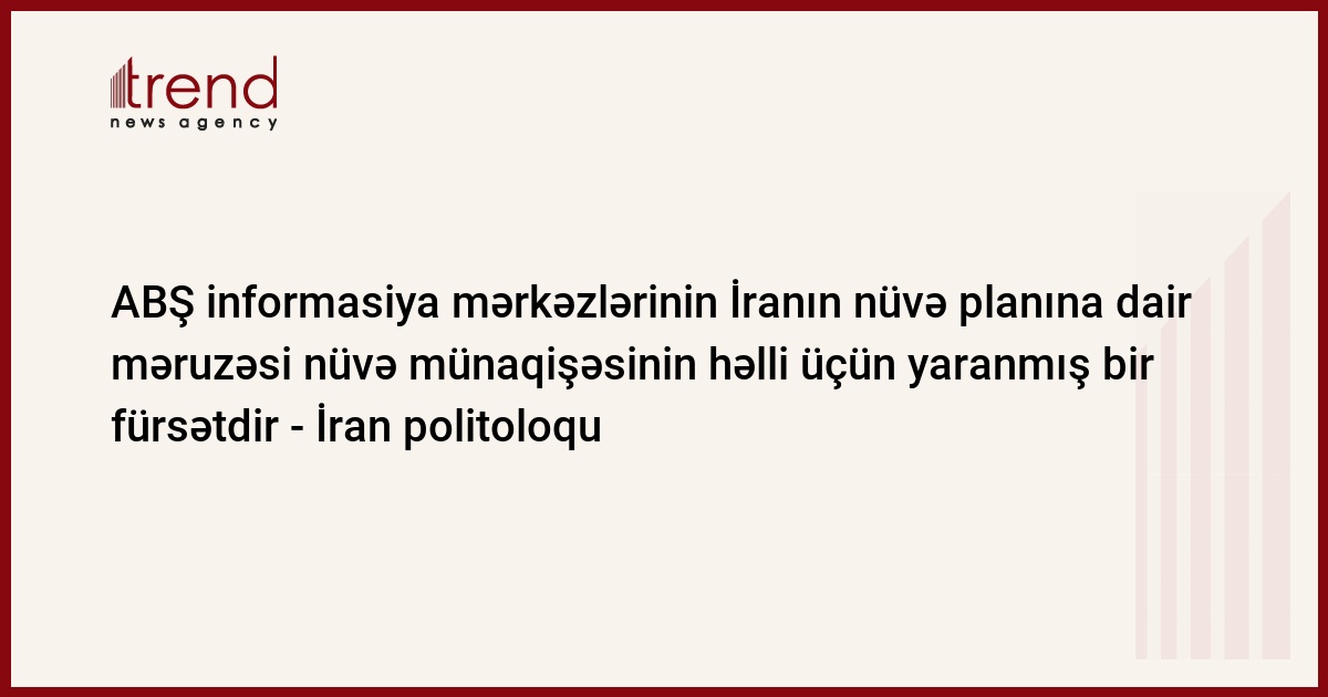 Azərbaycan, Bakı / "Trend müxbir D.Xatınoğlu/ ABŞ informasiya mərkəzlərinin İranın nüvə planı barədə yeni məruzələri Qərbin İrana qarşı tutduğu siyasətdə dönüş nöqtəsi yarada bilər. "ABŞ informasiya mərkəzlərinin İranın nüvə planına dair məruzəsi nüvə münaqişəsinin həlli üçün yaranmış bir fürsətdir" - deyə İran politoloqu Omid Ərəb bildirib.