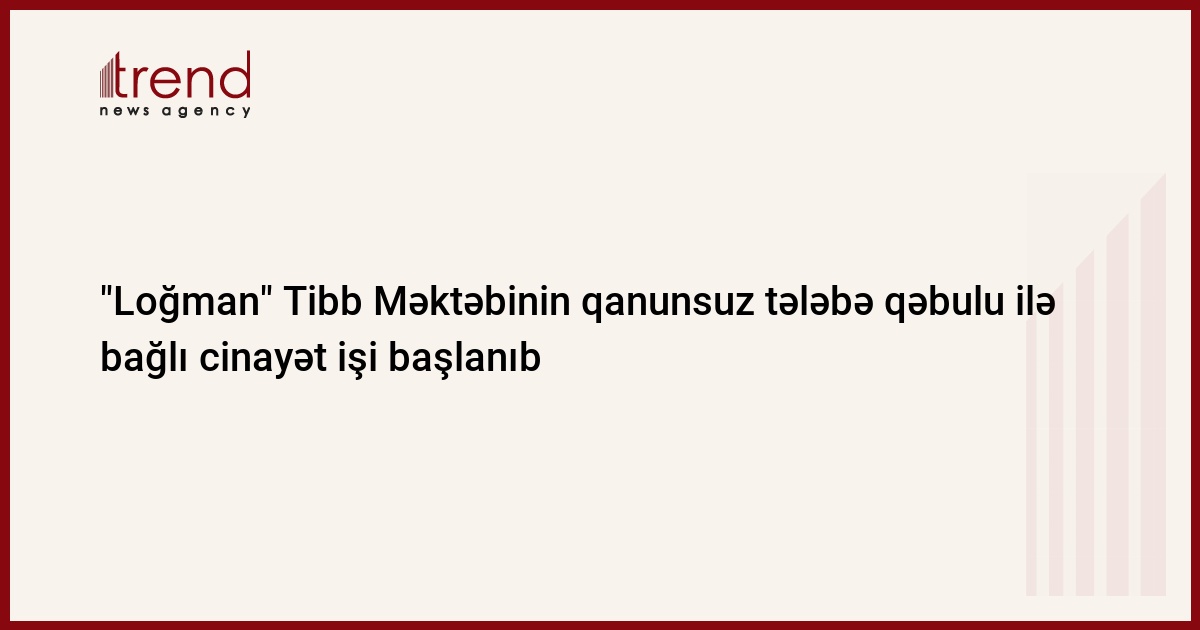 Azərbaycan, Bakı/ Trend müxbir K.Zərbalıyeva/ "Loğman" Tibb Məktəbinin qanunsuz tələbə qəbulu aparması faktı ilə bağlı cinayət işi başlanıb.