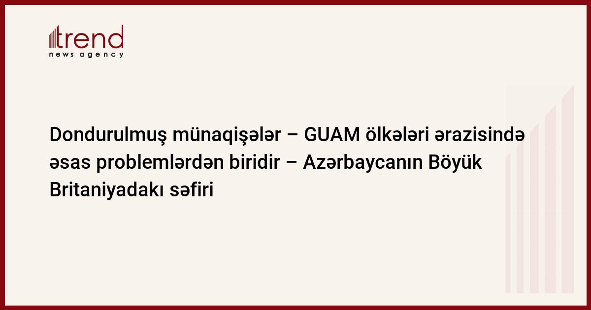 Böyük Britaniya, London / müxbir Trend G.Əhmədova / Bu günləri GUAM ölkələri ərazilərində ən xoşagəlməz problemlərdən biri olan - dondurulmuş konfliktlərdir. Bunları isə Azərbaycana, Gürgüstana və Moldovaya şamil etmək olar. Bunu Trend -in müxbirinə Londonda Azərbaycanın Böyük Britaniyadakı səfiri Fəxrəddin Qurbanov, GUAM-ın yaradılmasından 10 il keçməsi ilə əlaqədar olaraq tədbirin keçirməsindən sonra demişdir.