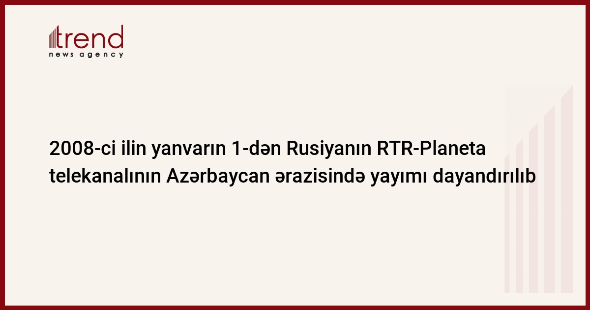Azərbaycan, Bakı / Trend / 2008-ci ilin yanvarın 1-dən Rusiyanın RTR-Planeta telekanalının Azərbaycan ərazisində yayımı dayandırılıb. 2007-ci ilin yayında başlayan danışıqlara rəğmən tərəflər razılaşma əldə edə bilməyiblər. Nəticədə Milli Televiziya və Radio Şurası kanalın yayımının dayandırılması ilə bağlı qərar qəbul edib.