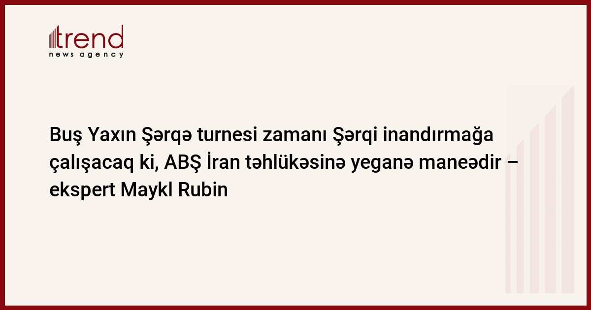 Azərbaycan, Bakı / müxbir Trend A.Qasımova / ABŞ prezidenti Corc Buş Yaxın Şərqə turnesi zamanı ərəb ölkələrini inandırmağa çalışacaq ki, ABŞ İran təhlükəsinə qarşı çiddi maneə törədəcək. Bu fikiri amerikalı ekspert Maykl Rubin deyib.
