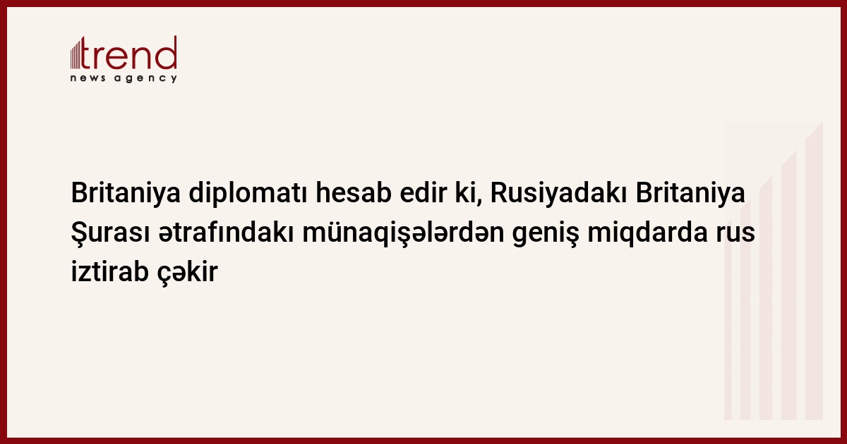 Azərbaycan, Bakı, 19 yanvar / Trend , müxbir A.İsmayılova / Böyük Britaniyanın Rusiyadakı səfirinin müavini Lori Bristou Moskvadan telefonla Trend ə bildirib ki, Rusiyanın ərazisindəki Britaniya Şurasının fəaliyyətinin məhdudlaşması üzündən, geniş miqdarda rus iztirab çəkir.