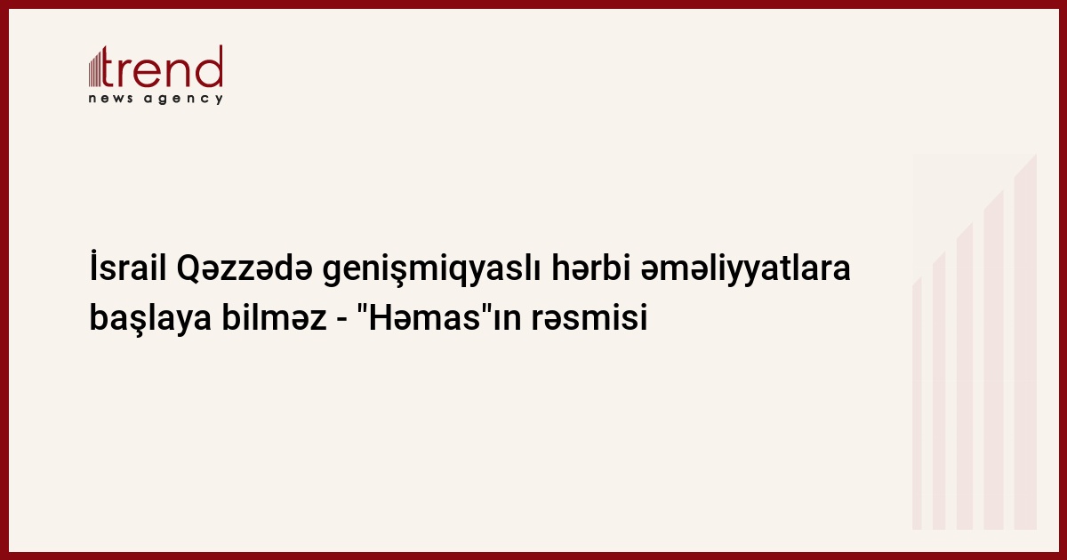 Azərbaycan, Bakı, 25 yanvar / "Trend , müxbir R.Hafizoğlu/ "Həmas"ın rəsmisi hesab edir ki, Qəzzədə İsrail tərəfindən blokada şəraitində genişmiqyaslı hərbi əməliyyatların başlanması mümkün deyil. "Qəzzə blokadada olsa da, İsrail orduları Qəzzə ərazisinə girə bilməz",- deyə cümə günü Trend ə "Həmas"ın mətbuat katibi Sami Əbu Zühri bildirib.