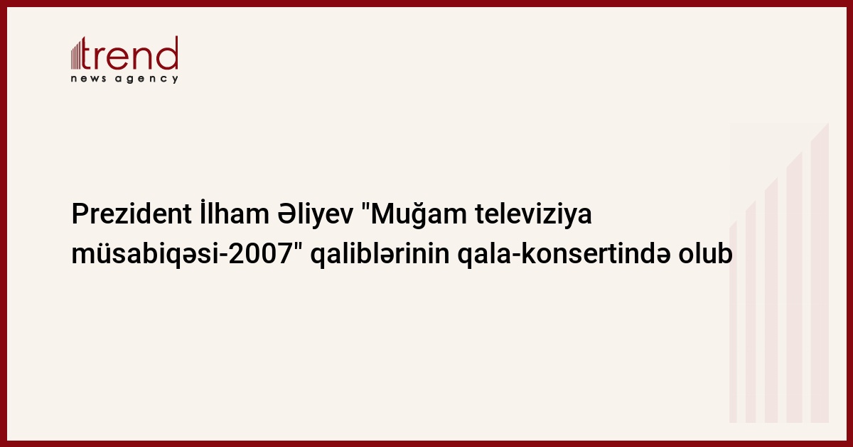 Fevralın 1-də Azərbaycan Dövlət Opera və Balet Teatrında Azərbaycan Mədəniyyətinin Dostları Fondunun layihəsi əsasında və Heydər Əliyev Fondunun dəstəyi ilə "Azərbaycan Televiziya və Radio Verilişləri" Qapalı Səhmdar Cəmiyyətinin keçirdiyi və üç aydan çox davam etmiş "Muğam televiziya müsabiqəsi-2007" qaliblərinin qala-konserti olub. Tədbiri Azərbaycan prezidenti İlham Əliyev və xanımı Mehriban Əliyeva da izləyib.
