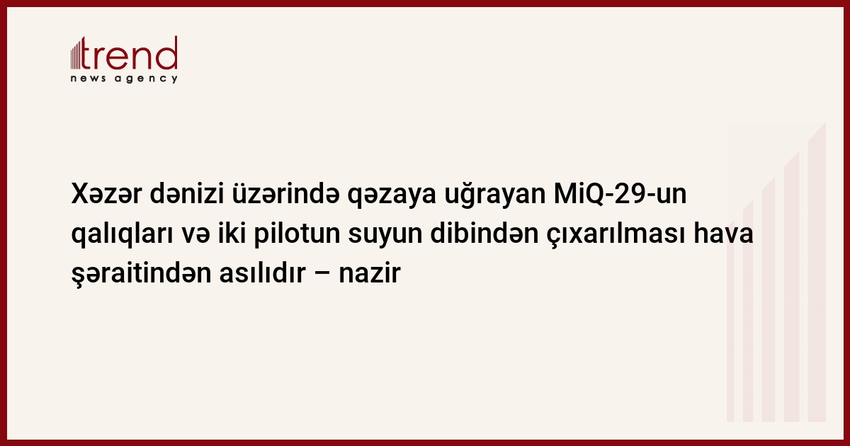 Azərbaycan, Lənkəran, 21 fevral / Trend , müxbir P.Əliyeva/ Yanvarın 29-da Xəzər dənizi üzərində qəzaya uğrayan MiQ-29-un qalıqları və iki pilotun suyun dibindən çıxarılması hava şəraitindən asılıdır.