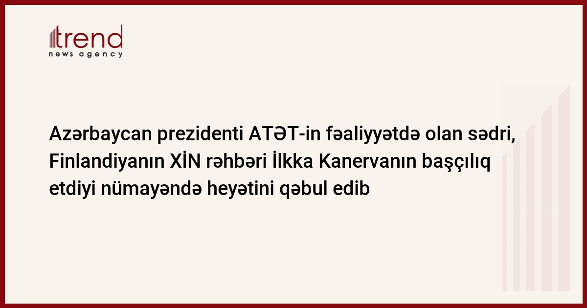 Azərbaycan, Bakı 28 fevral / Trend / Azərbaycan prezidenti fevralın 28-də ATƏT-in fəaliyyətdə olan sədri, Finlandiyanın XİN rəhbəri İlkka Kanervanın başçılıq etdiyi nümayəndə heyətini qəbul edib.