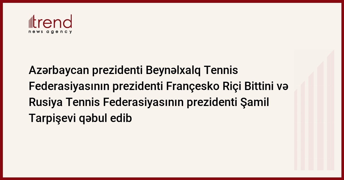 Azərbaycan, Bakı, 11 mart / Trend / Azərbaycan Respublikasının prezidenti İlham Əliyev çərşənbə axşamı Beynəlxalq Tennis Federasiyasının prezidenti Françesko Riçi Bittini və Rusiya Tennis Federasiyasının prezidenti Şamil Tarpişevi qəbul edib.