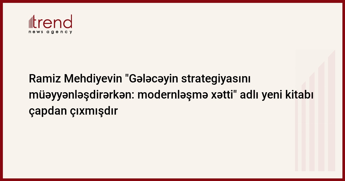 Azərbaycan, Bakı. 14 mart / Trend / Azərbaycan Prezidentinin İcra Aparatının rəhbəri, Milli Elmlər Akademiyasının həqiqi üzvü Ramiz Mehdiyevin "Gələcəyin strategiyasını müəyyənləşdirərkən: modernləşmə xətti" adlı yeni kitabı çapdan çıxmışdır. Kitaba epiqraf kimi liberalizmin ideoloqu Con Stüart Millin (1806-1877-ci illər) aşağıdakı sözləri verilmişdir: "Dövlətin ləyaqəti nəticə etibarilə onu yaradan şəxsiyyətlərin ləyaqətindən asılıdır".