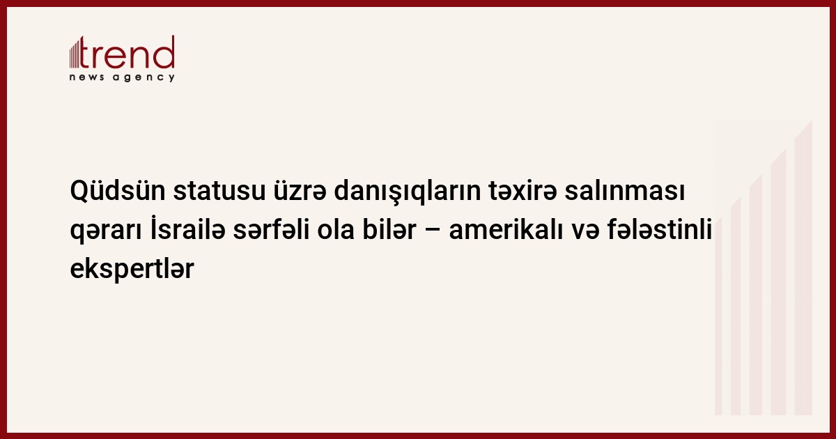 Azərbaycan, Bakı, 14 aprel / " müxbir A.Qasımova, E.Tarıverdiyeva, R.Hafizoğlu/ Fələstin-İsrail danışıqları zamanı qəbul edilmiş Qüdsün statusu məsələsinin müzakirəsinin beş il müddətinə təxirə salınması haqqında qərar, ilk növbədə, İsrailə sərfəlidir.