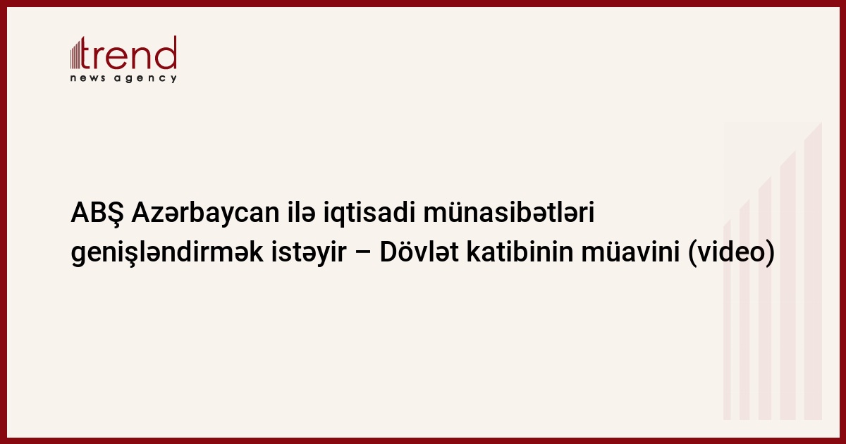 Azərbaycan, Bakı, 22 aprel / Trend , müxbir K.Ramazanova/ "Azərbaycan ABŞ üçün mühüm tərəfdaşdır və biz iqtisadi münasibətləri genişləndirmək istəyirik. Siyasi əməkdaşlığın inkişafı üçün iqtisadi əlaqələr mühümdür", - deyə çərşənbə axşamı Bakıda ABŞ dövlət katibinin energetika, kənd təsərrüfatı və iqtisadiyyat məsələləri üzrə müavini Robin Cefri Azərbaycanın XİN başçısı ilə görüşdən sonra bildirib.