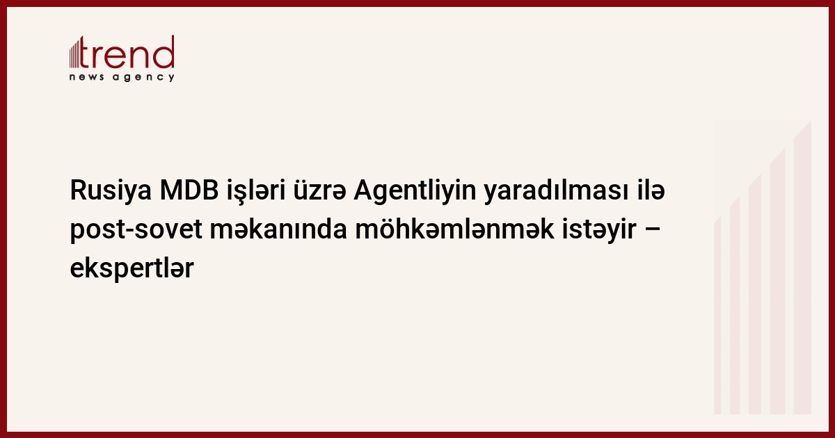 Azərbaycan, Bakı, 13 may/ Trend , müxbir R.Ağayev, E.Rüstəmov, D.Novosvitski/ Moskva MDB işləri üzrə ixstisaslaşmış Agentlik yaradaraq və post-sovet regionunu özünün təsir zonası hesab edərək, problemli qarşılıqlı əlaqə məsələlərini daha operativ həll edəcək və bununla da itirilmiş mövqelərini bərpa edəcək. Ekspertlər belə hesab edirlər.