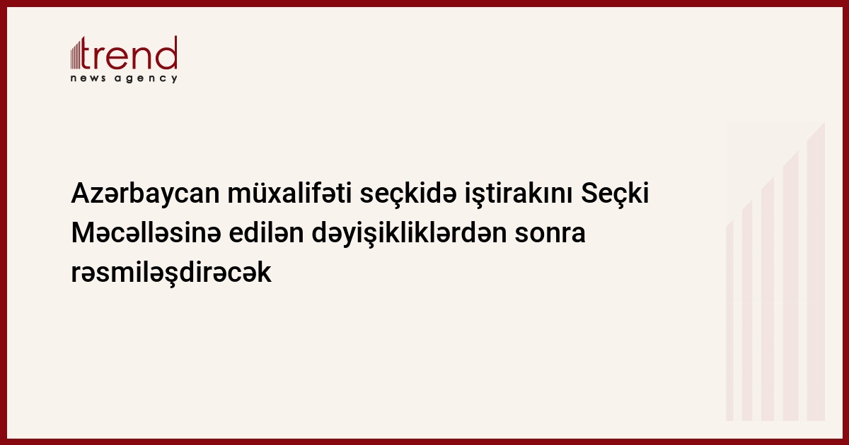 Seçki Məcəlləsinə əlavə və dəyişiklikləri nəzərdə tutan layihə mayın sonunda Milli Məclisdə müzakirə olunacaq.