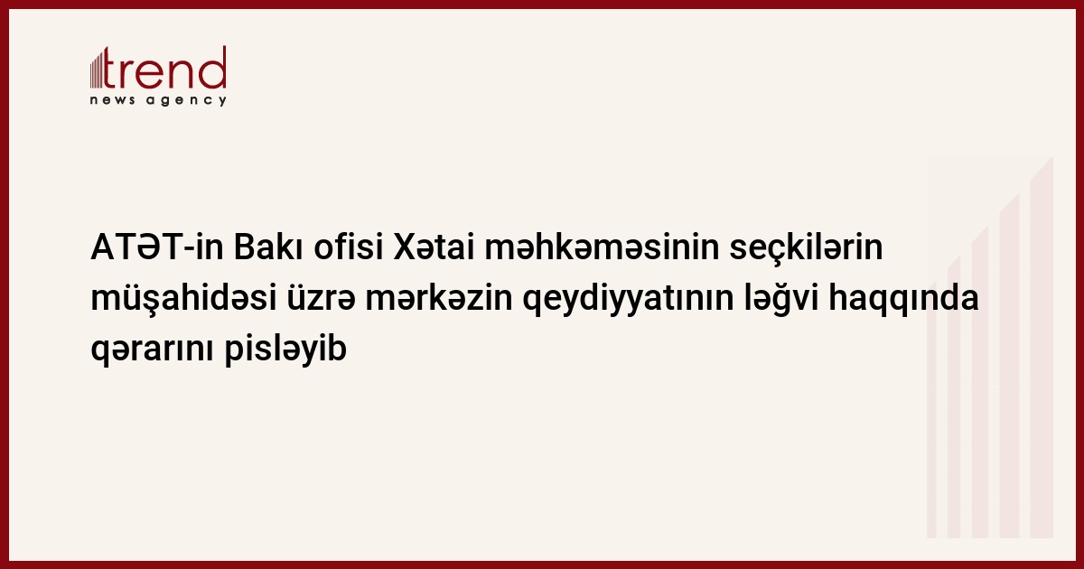 Azərbaycan, Bakı, 15 may/ Trend müxbir M.Əliyev/ ATƏT-in Bakı ofisi Xətai rayon məhkəməsinin Seçkilərin Monitorinqi Mərkəzinin qeydiyyatının ləvği haqqında qərarı ilə bağlı təəssüf edir.