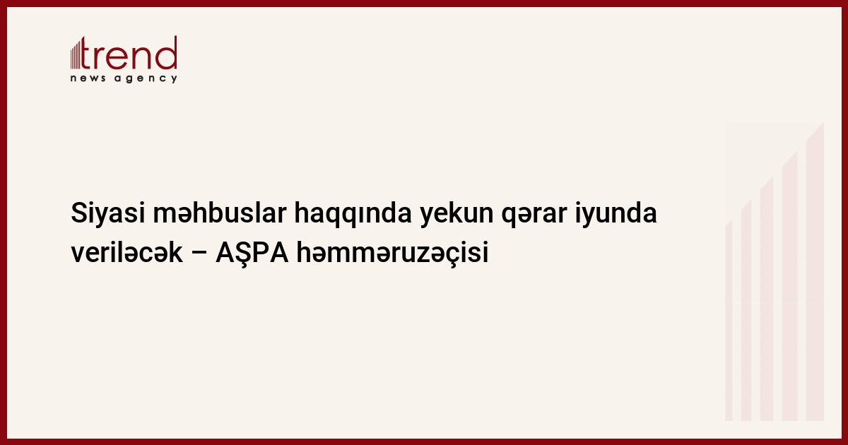 Azərbaycan, Bakı, 19 may/ Trend , müxbir M.Əliyev/ Siyasi məhkumlar haqqında yekun qərar iyunda keçiriləcək. Bu barədə bazar ertəsi, Avropa Şurasının Azərbaycandakı ofisində keçirilən mətbuat konfransında həmməruzəçi Andres Herkel məlumat verib.